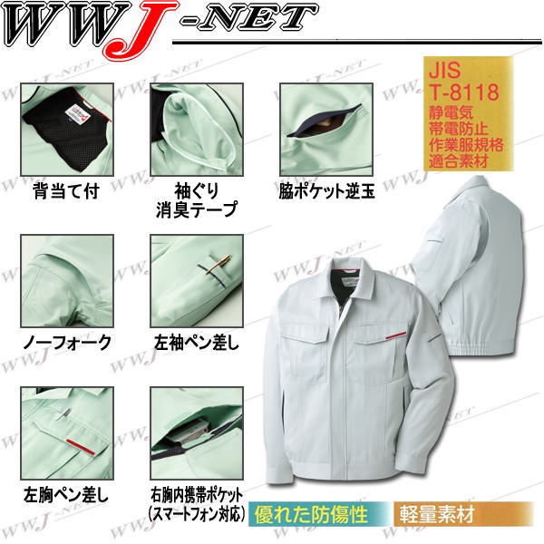 商品説明 カラー ◆全3色ネイビー,シルバー,アースグリーン サイズ ◆S,M,L,LL,3L,4L,5L サイズ別価格 ◆3Lは200円アップ、4L 5Lは500円アップ 素材 ◆ポリエステル85%・綿15%(交織ツイル) 機能 ◆背当て付◆袖ぐり消臭テープ◆ノーフォーク◆左袖ペン差し◆左胸ペン差し◆右胸内携帯ポケット(スマートフォン対応)◆脇ポケット逆玉◆樹脂ファスナー◆樹脂ボタン メーカー クロダルマ株式会社 取寄せ商品 ご注文後、発送までに2〜4営業日(土日祝日を除きます)ほどお時間を頂く場合がございます。